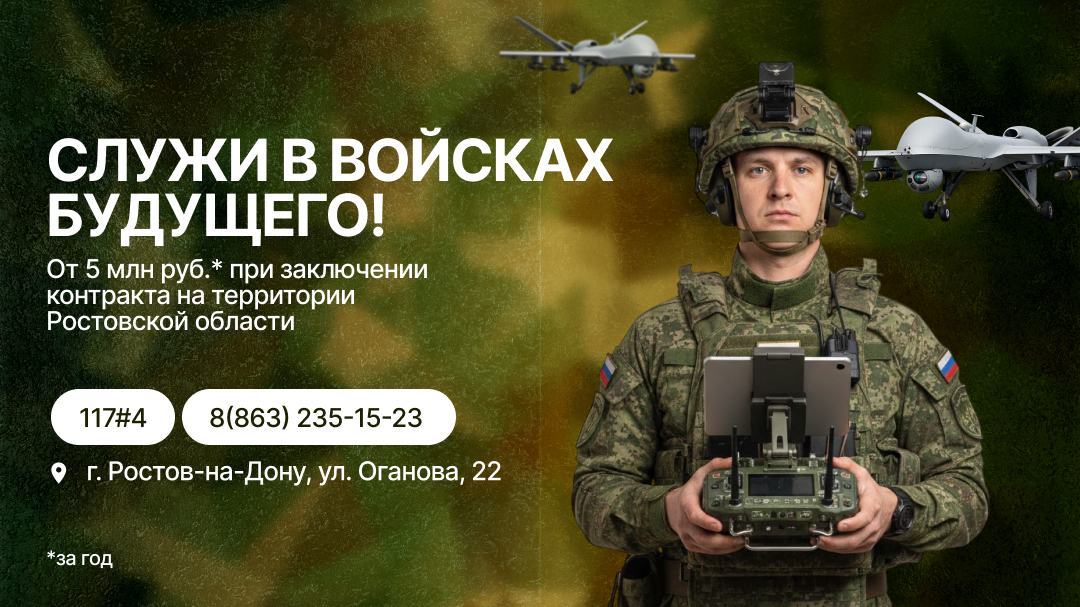 В соответствии с письмом заместителя Губернатора Ростовской области Водолацкого Д.В. от 03.02.2026 № 8/100, в целях выполнения задач по комплектованию Вооруженных Сил Российской Федерации и в рамках проведения агитационно-пропагандисткой кампании по привлечению граждан на военную службу по контракту, в том числе в подразделениях Беспилотных систем. Информация по ссылке https://disk.yandex.ru/d/zBO2Sjv5peEna.